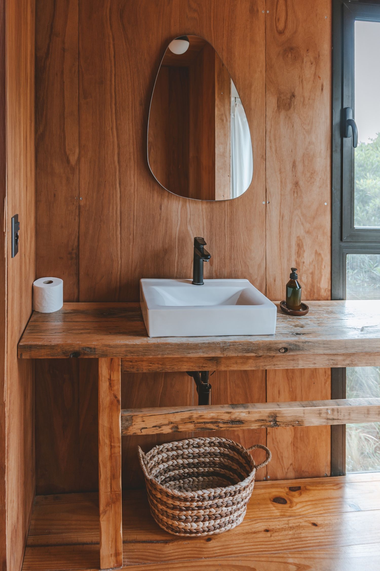 Baño, estufa a leña, deck con pérgola y hamaca paraguaya.